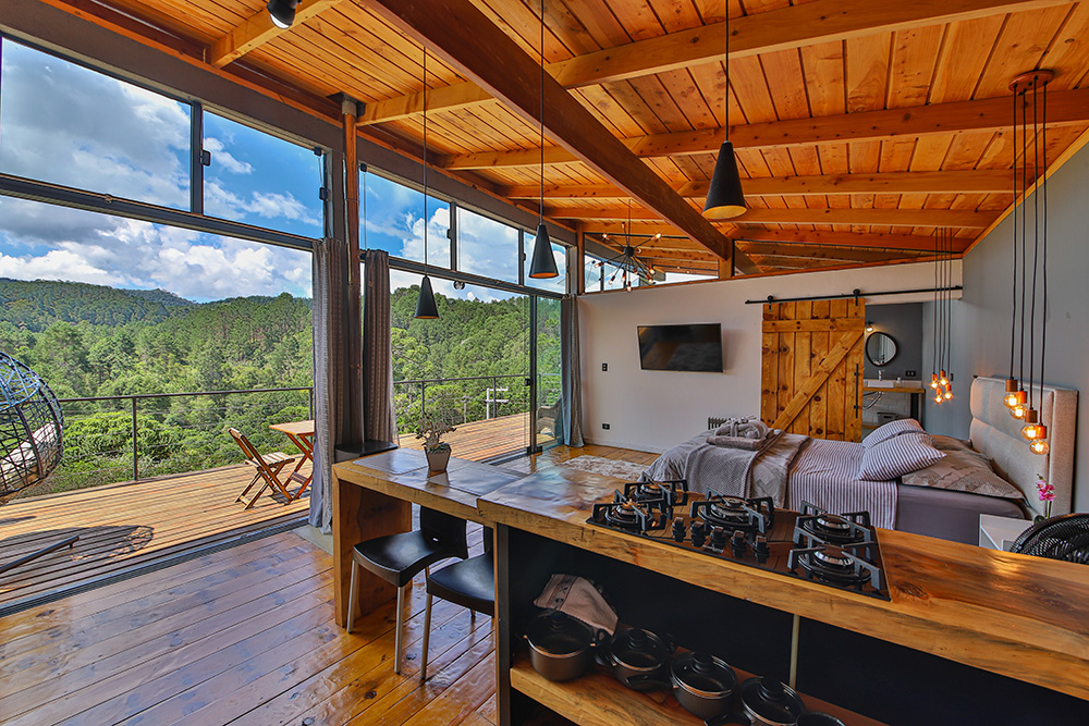 Cabana nova e moderna, com uma vista incrível para a montanha em todos os cômodos!