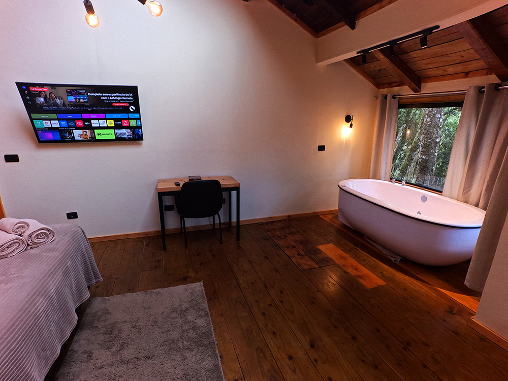 A Cabana está bem equipada com todos os utensílios de cozinha e lareira para os dias mais frios. E apesar de ficar em meio a mata tem todo conforto e tecnologia da cidade tais como: internet , Tv Smart com netflix. Você também pode aproveitar a linda área da fogueira e ofurô recém instalado no quarto.